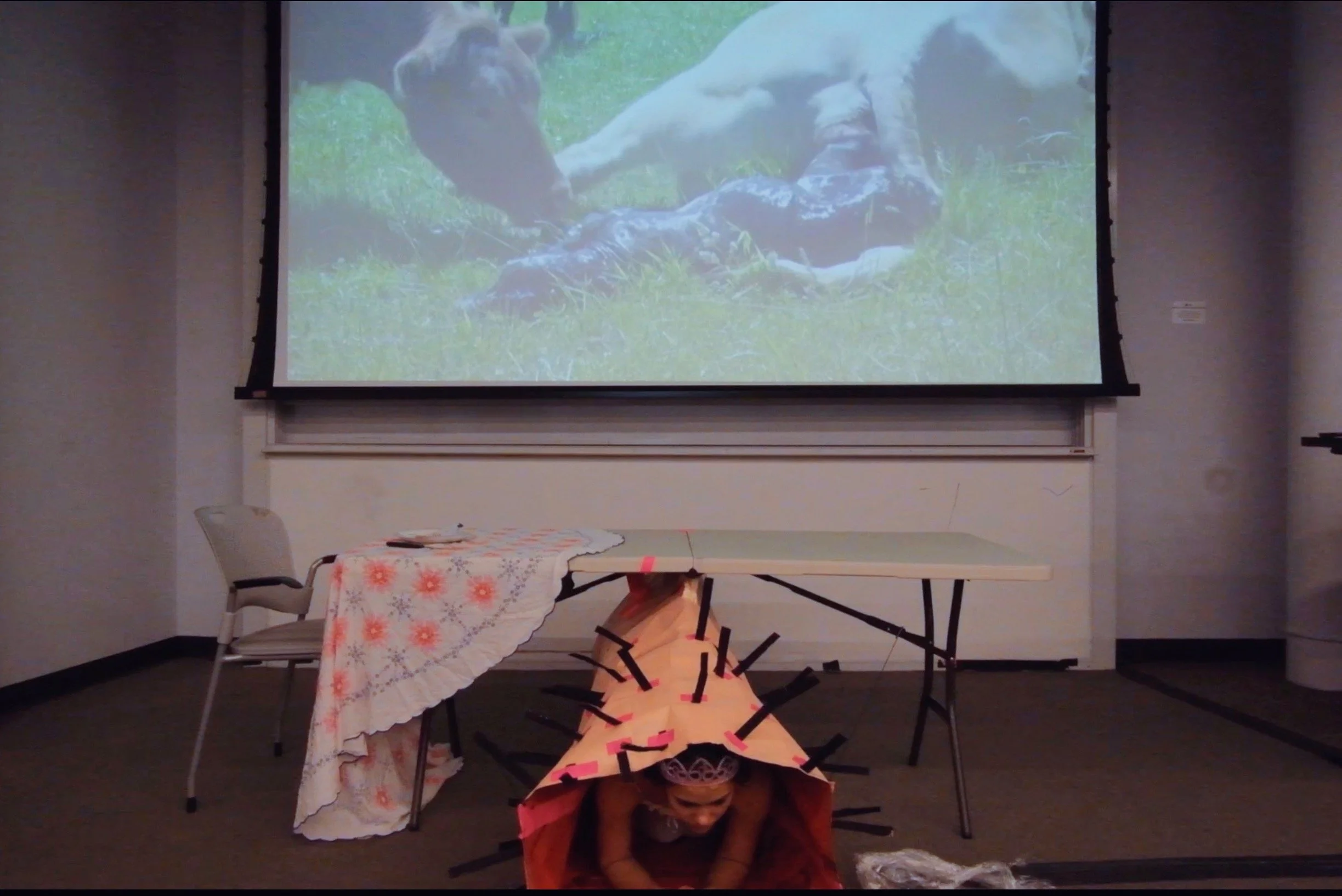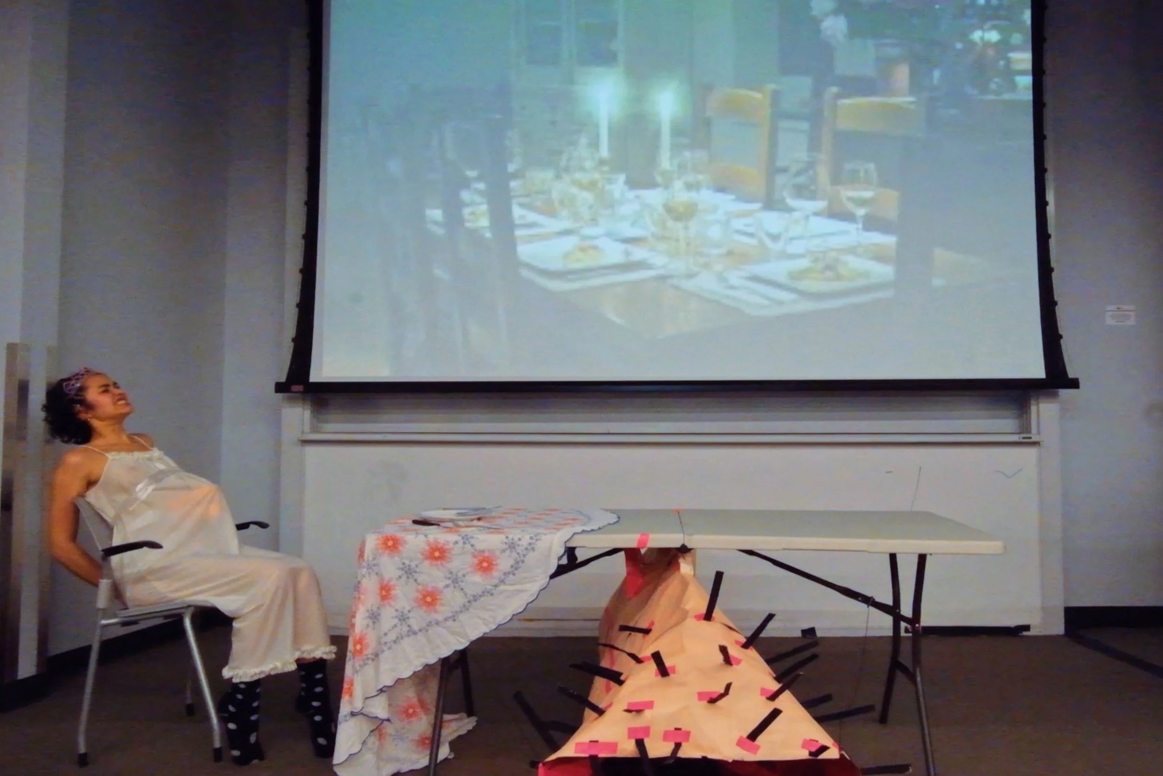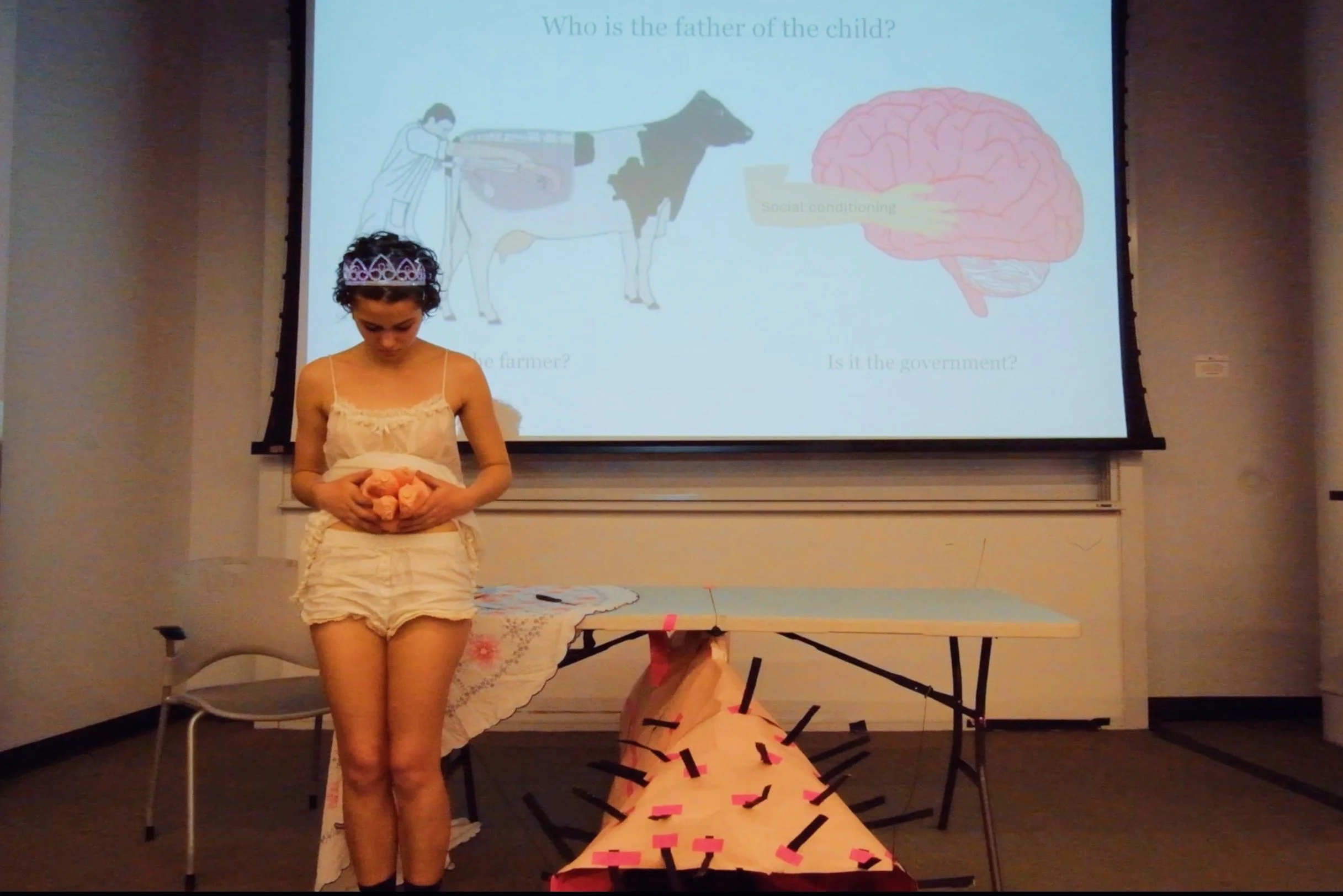 Biting the Hand that Doesn’t Feed you is an interactive one woman performance piece, where I explore ideas of autonomy, femininity, and power through the intersection of politics and performance